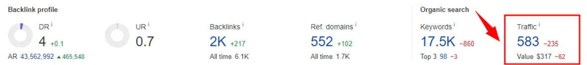 Site link profile: Ahrefs DR 3, 316 unique donor domains, 2K+ links, 583 monthly visitors.