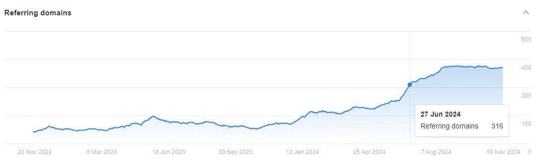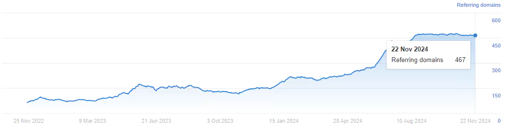 We placed links on 52+ trusted sites of relevant topics and target geo, ensuring the growth dynamics of the site’s link mass: