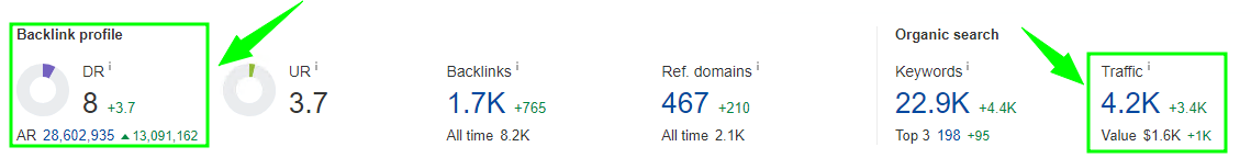 In 4 months of active link building for an online auto parts store in the USA, the DR of the site according to Ahrefs increased from 3 to 8: