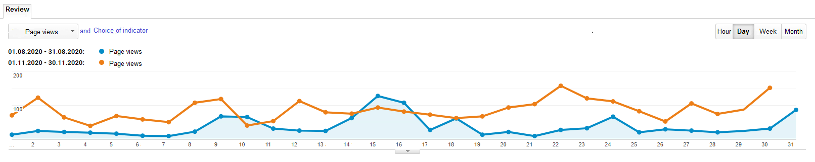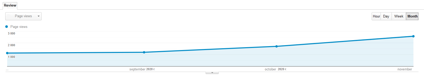 Growth of organic traffic from 480 visitors per month to 1800: comparison August 2020 and November 2020 (data from Google Analytics, Google Search Console)